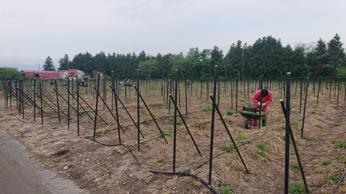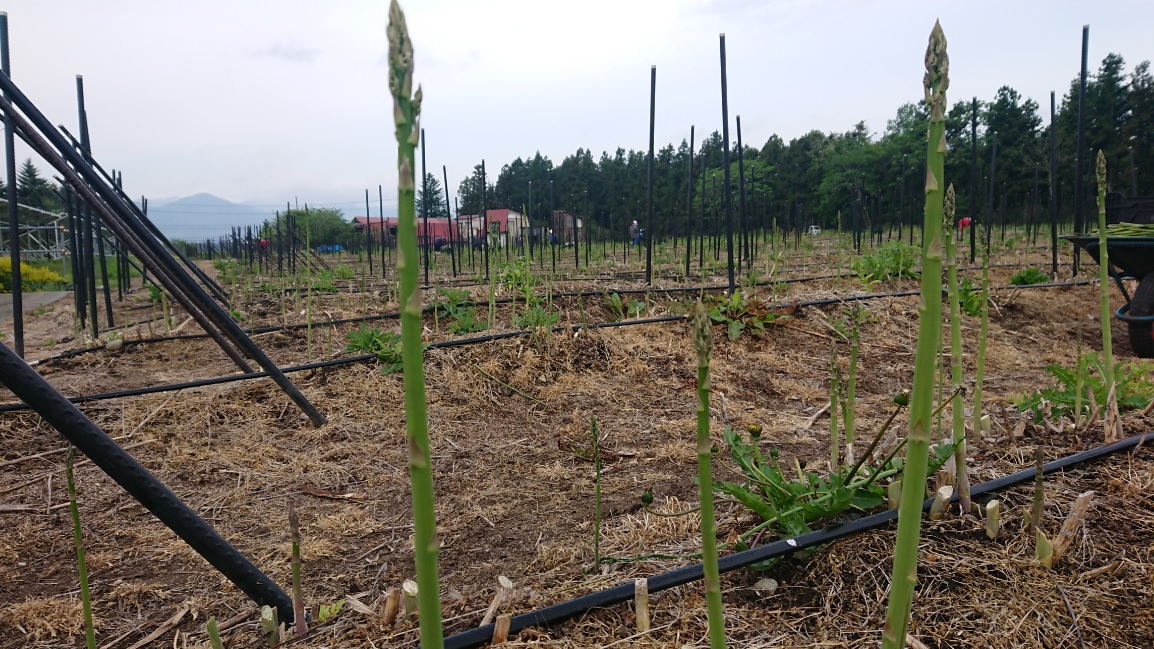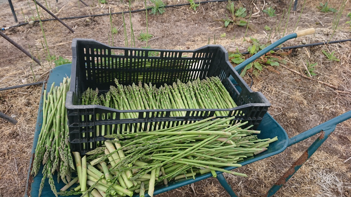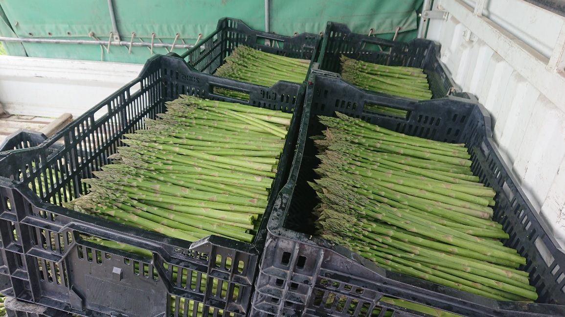 アスパラの収穫風景です。毎朝、早朝からアスパラを収穫、その日のうちに出荷しています。アスパラガスは今が旬で柔らかくて甘いです。鮮度重視の朝採りアスパラガスを産地直送でお届けしています。当店の駐車場の道路に面したところの一角に直売所を設置いたしました。週末は季節野菜やお弁当の販売をしていますが、今はアスパラが大人気!一束100円という値段で採れたてのアスパラをご自宅で食べられるのですからあっという間になくなってしまいます。アスパラの保管は寝かさず、立てて置くことですが、基本的にはその日のうちに食べることをお勧めします。それから緊急告知です!5月21日(火)、テレビ岩手の「5きげんテレビ」に出演します。出演は5時半頃になると思いますが、先般発売した「きたかみ牛すじカレー」の紹介をします。5きげんテレビのメインキャスターである岩瀬さんに当社の牛すじカレーを試食していただきます。どんなやりとりがあるのか、生放送なのでハプニングが発生するかもしれません!?お楽しみに!