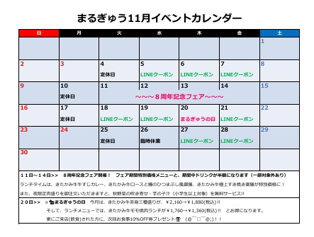 11月も皆様のご来店をスタッフ一同心よりお待ちしております♪